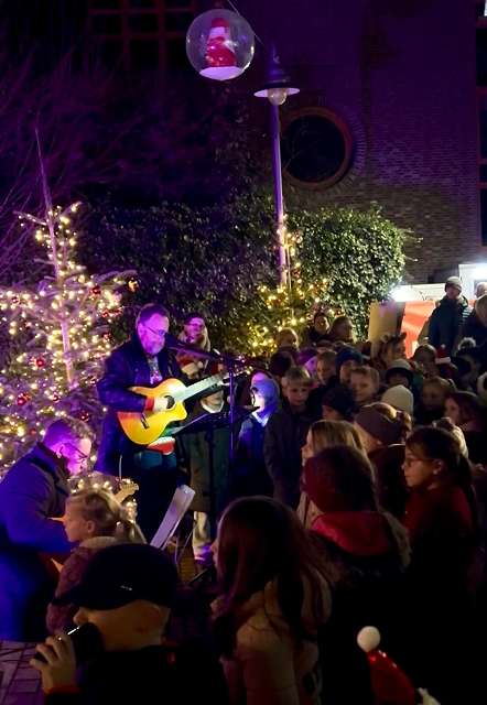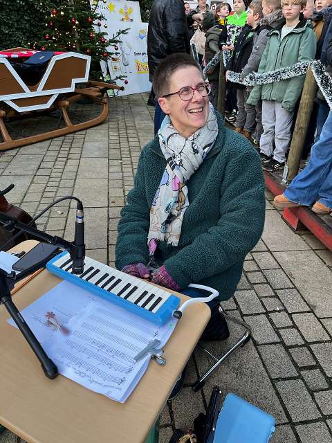 Musikalisch wurde das Krippenspiel von Herrn Boog an der Gitarre und Herrn Aalderks an der E-Gitarre begleitet. Frau Boog unterstützte zwei Aufführungen mit der Melodica.